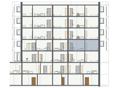 Bližší detail bytové jednotky (výpis jednotlivých místností, půdorys jednotky, orientace bytu) získáte poklikáním na konkrétní bytovou jednotku.